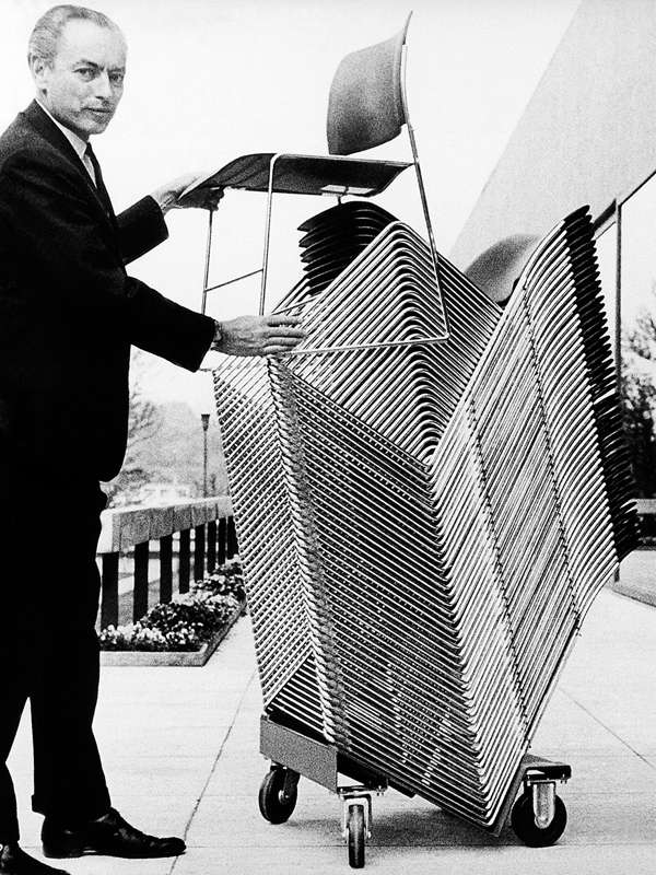 Rowland called himself an “architect of products.” The scope and quantity of his work might seem limited, but in truth it was dedicated to the greatest cause – to design a minimal stacking chair. With minimalization being the end state in all senses: materials, weight, volume, and cost. His outstanding work was a further development of the Bauhaus modern aesthetic.