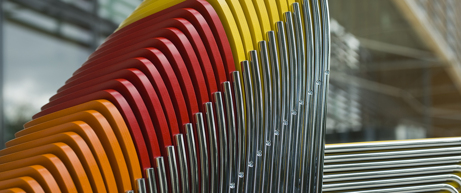 The 40/4 series has become one of the most widely used chairs of the last quarter century because of its stacking properties. Rowland worked for more than twenty years to perfect the idea for this mass-produced chair.