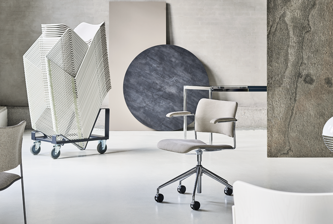 The 40/4 chair by David Rowland has maintained its popularity since 1964 without any decline. It has transcended the circumstances of its initial production and continues to support and enhance the individual character of any building, be it historic or modern.