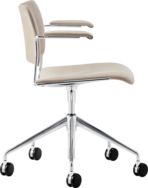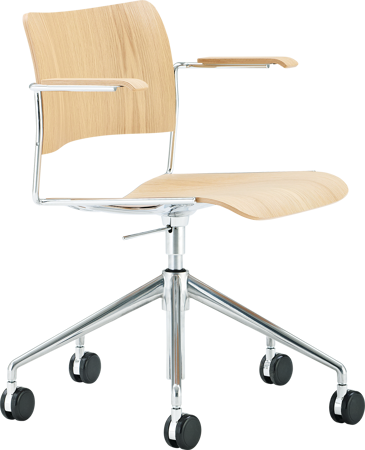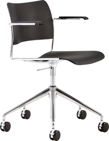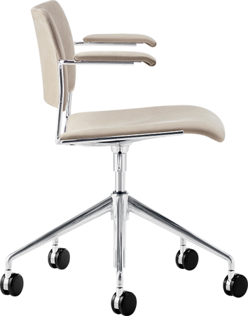 Choose between castors or glides. It is height adjustable, providing a seating height span from 460 mm - 585 mm on castors and a seating height span from 425 mm - 545 mm on glides.