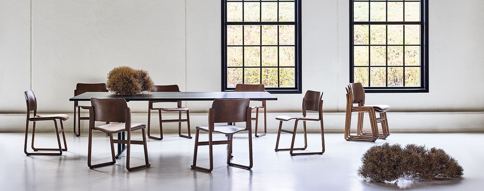The 40/4 wood frame is an alternative to the original chair with its iconic steel rod sled frame. The goal was to retain the proportions, angles, and characteristic curves whilst giving the choice of a different material.