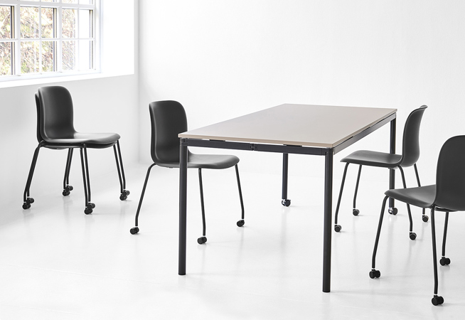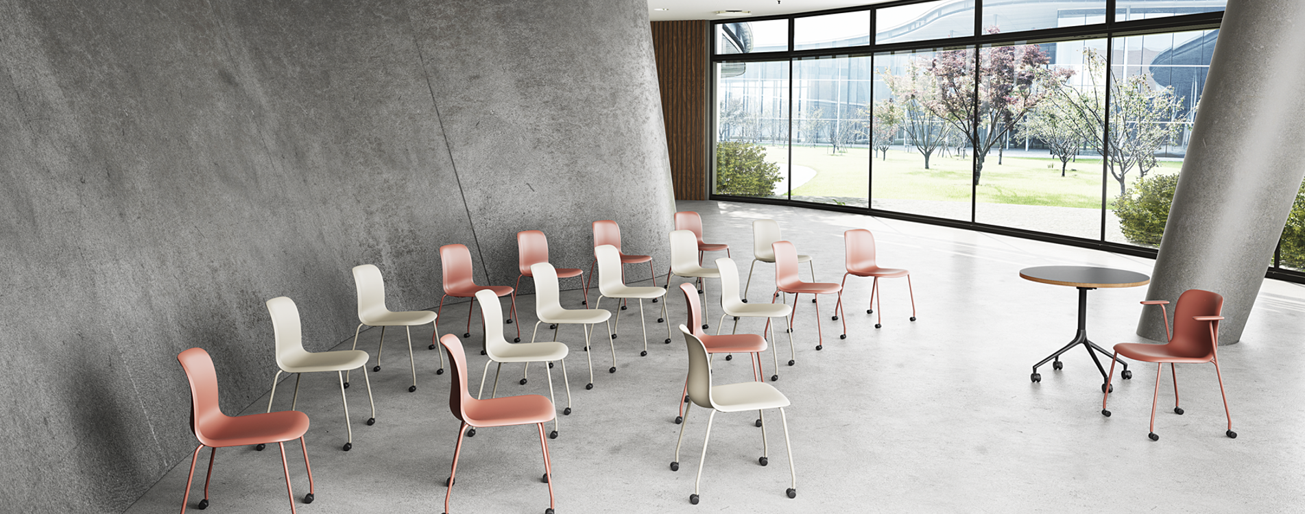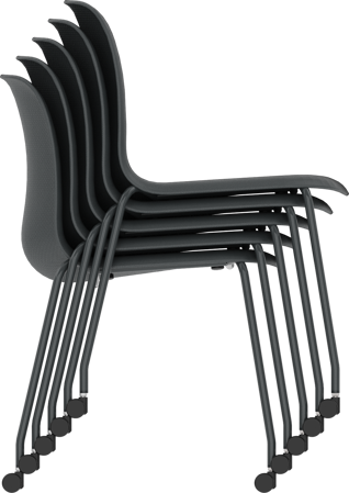 SixE 4-leg with castors is a stackable multi-purpose chair that offers extra mobility. Ideally suited to collaborative, training, meeting, and conference environments, SixE 4-leg with castors is truly created for mobility and flexibility. The castors are sturdy, albeit discreet, making the chair an ideal solution for projects where there is no place for compromise between space-saving solutions and smooth mobility of the chair.