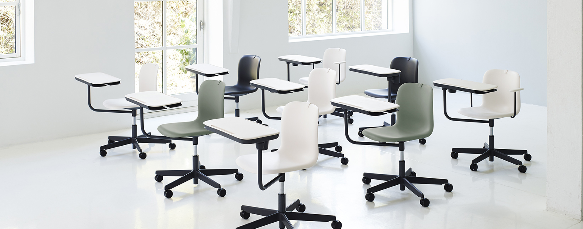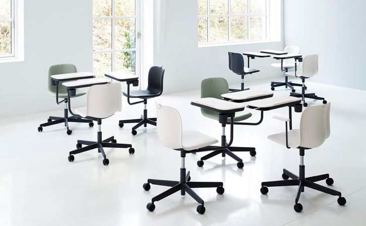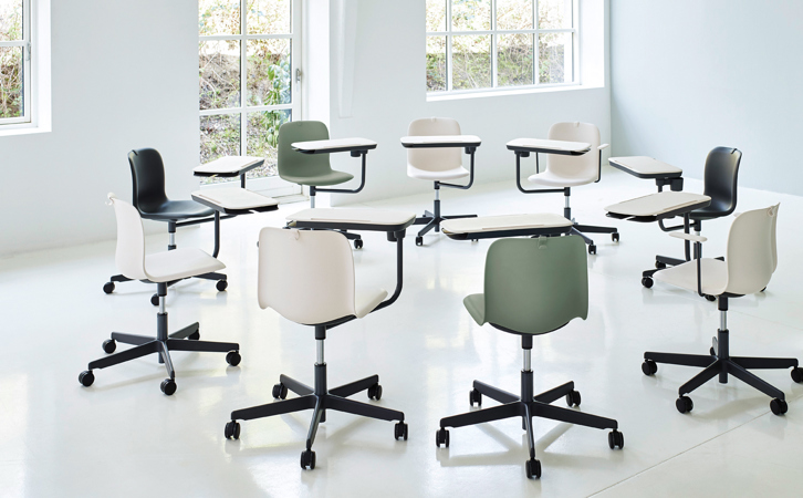 The SixE Learn is a flexible chair for collaborative learning environments. It moves, turns, and takes things to the next level. Adding a string of well-thought features such as a personal work surface with storage, SixE Learn makes room for endless active experiences.
