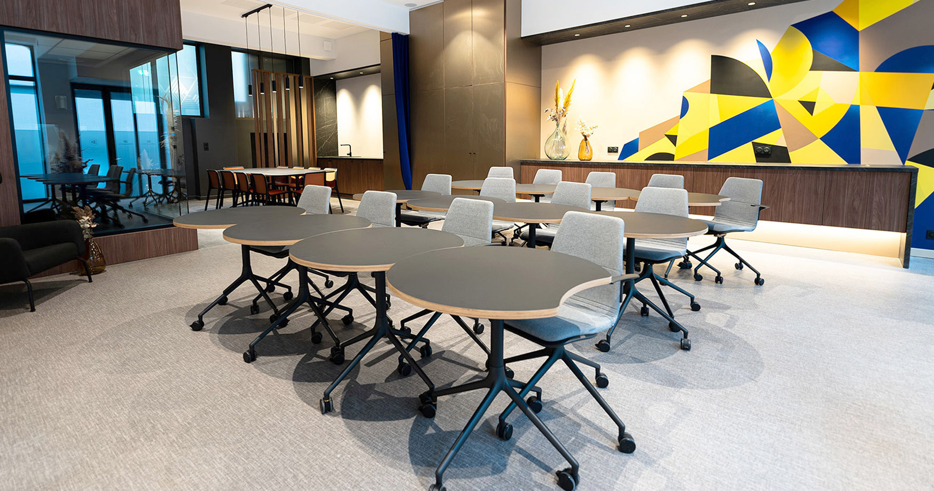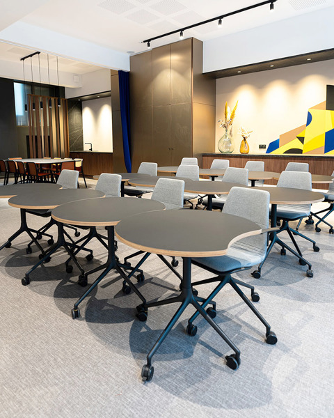 The challenge was clear: furnish the space with products that could seamlessly shift between multiple configurations, from small group discussions to large collaborative sessions, while ensuring comfort and aesthetic appeal.