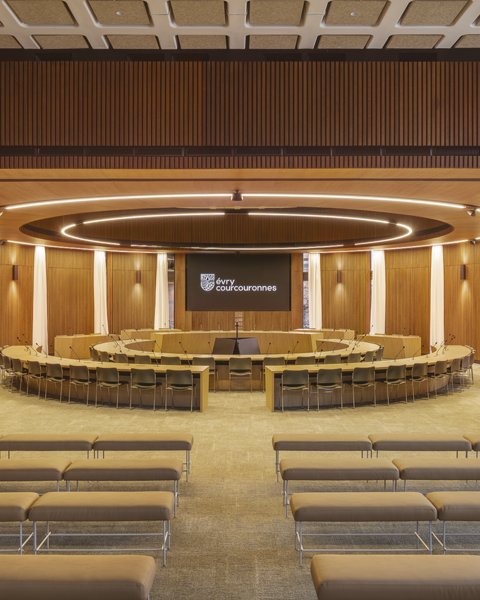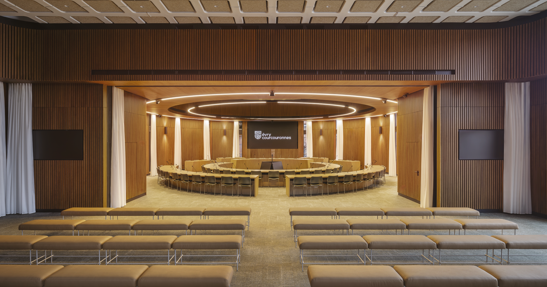 Renovation of the Assembly room and Wedding room at Mairie d’Évry-Courcouronnes reflects a clear architectural ambition: to create civic spaces that balance representational character with everyday functionality. Designed by SAFA, the project brings together institutional elegance, adaptability, and durability - essential qualities for rooms used daily by municipal staff and the public alike.