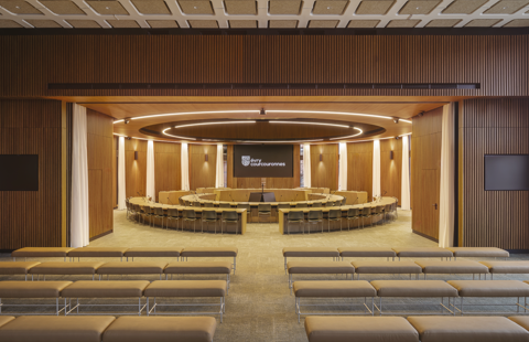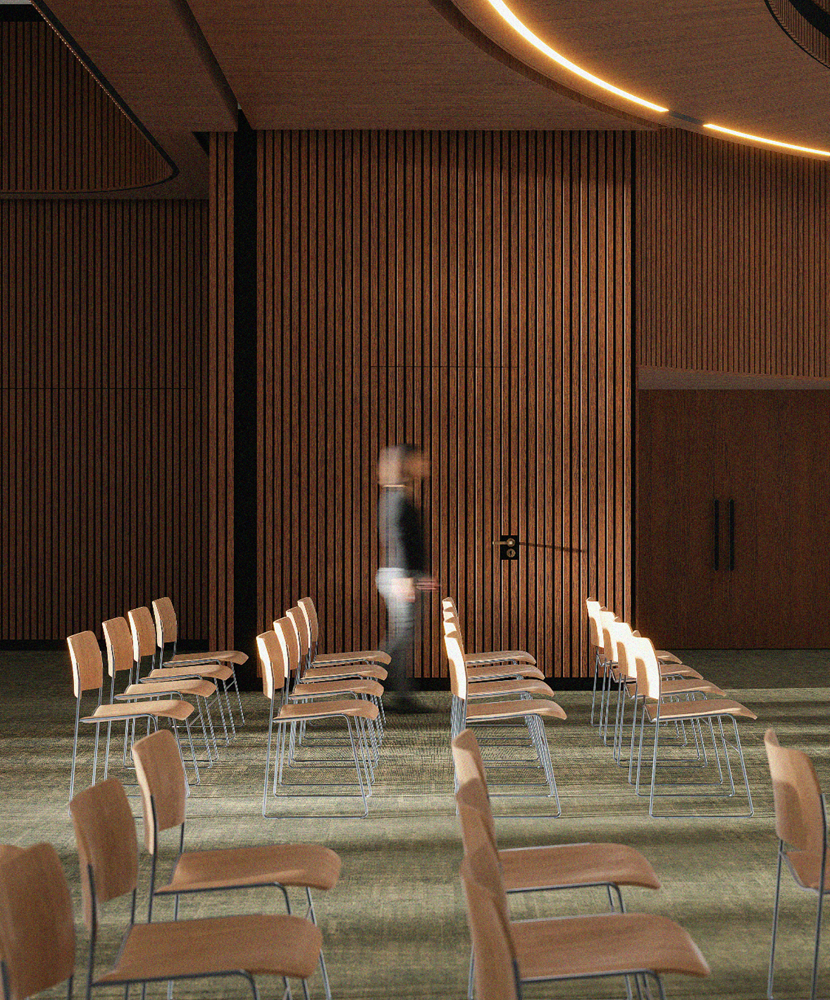 This required solutions capable of supporting frequent change while maintaining comfort, clarity, and a consistent architectural expression. The interiors combine bespoke tables with flexible seating, allowing spaces to shift seamlessly between formal assemblies, ceremonies, and public events.