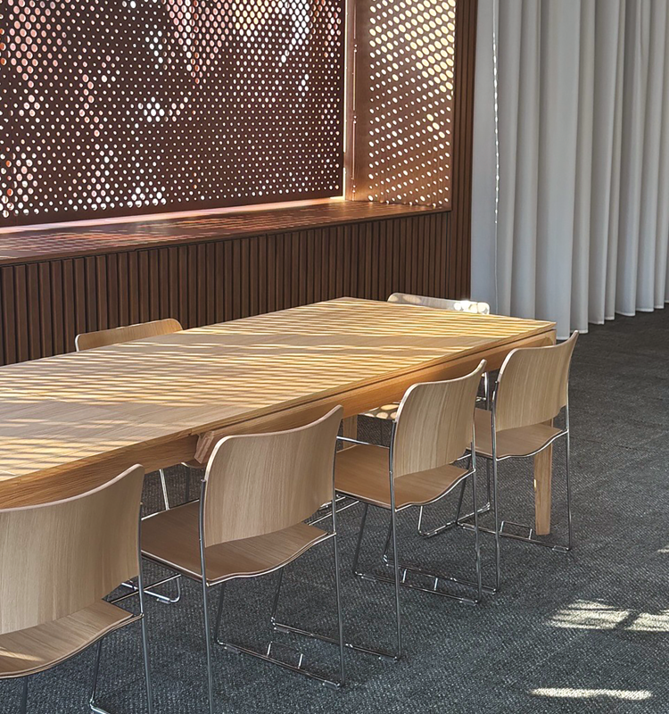 For seating, SAFA selected 40/4 chairs by HOWE. The choice was driven by the chair’s timeless expression, lightweight construction, and exceptional stackability - key attributes in environments where layouts change regularly and storage space is limited.