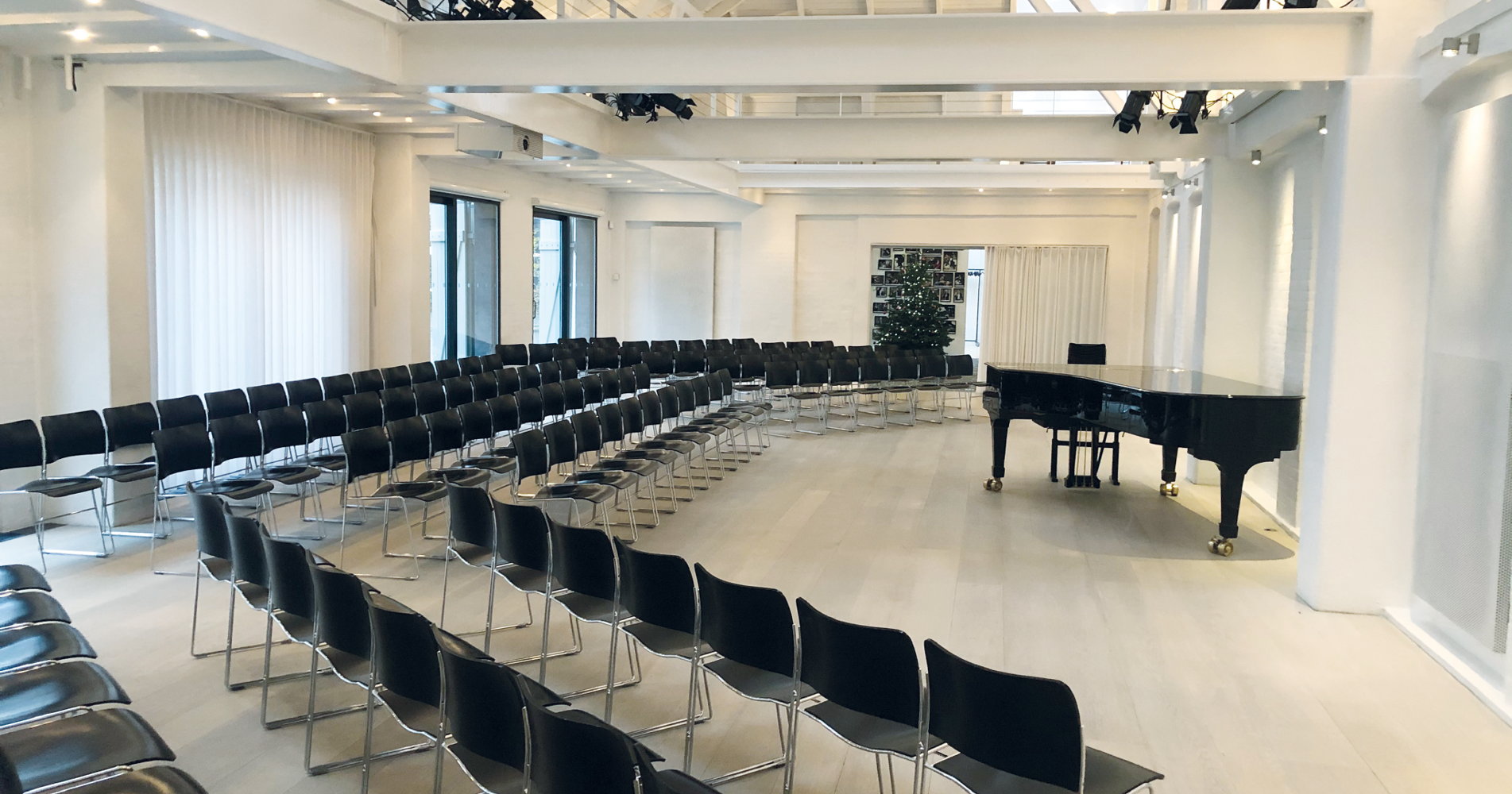 The concert hall is tucked away in a quiet backyard in historic Islands Brygge, Copenhagen. It hosts concerts, cultural activities, meetings, events, conferences, and product launches.