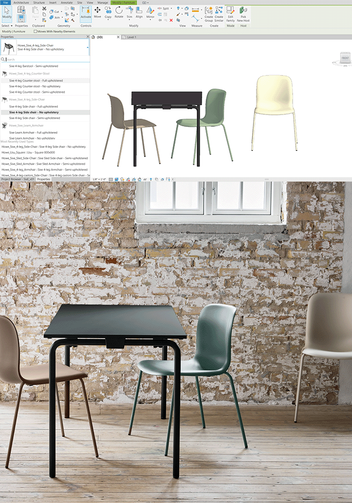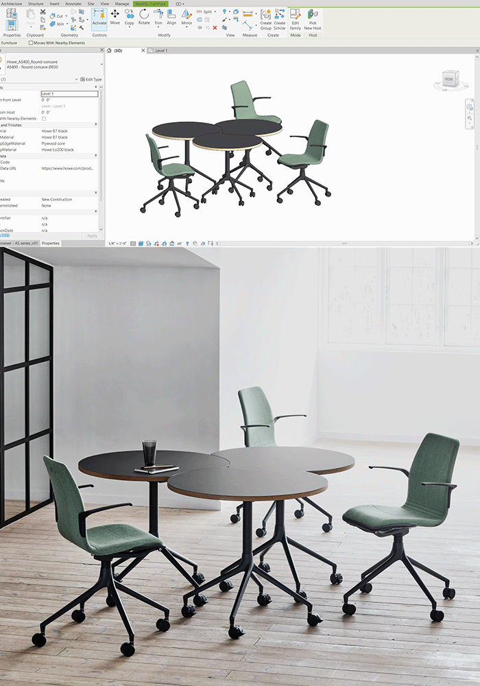 If you’re looking for flexible furniture solutions for your projects and working with REVIT, we have a perfect match! Download comprehensive files with HOWE furniture and get all the data you need to furnish dynamic spaces in the building you’re working on.